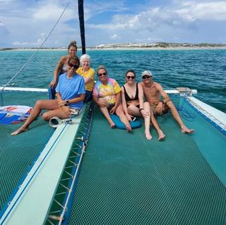 Smile 'n Wave is 31 foot custom built catamaran that is 19 feet wide. Most trips are 2 to 3 hours but you can go as long as you want. We see our local dolphins as well as swim, snorkel, sunset , go to crab island and enjoy fireworks! I can hold up to 6 people."